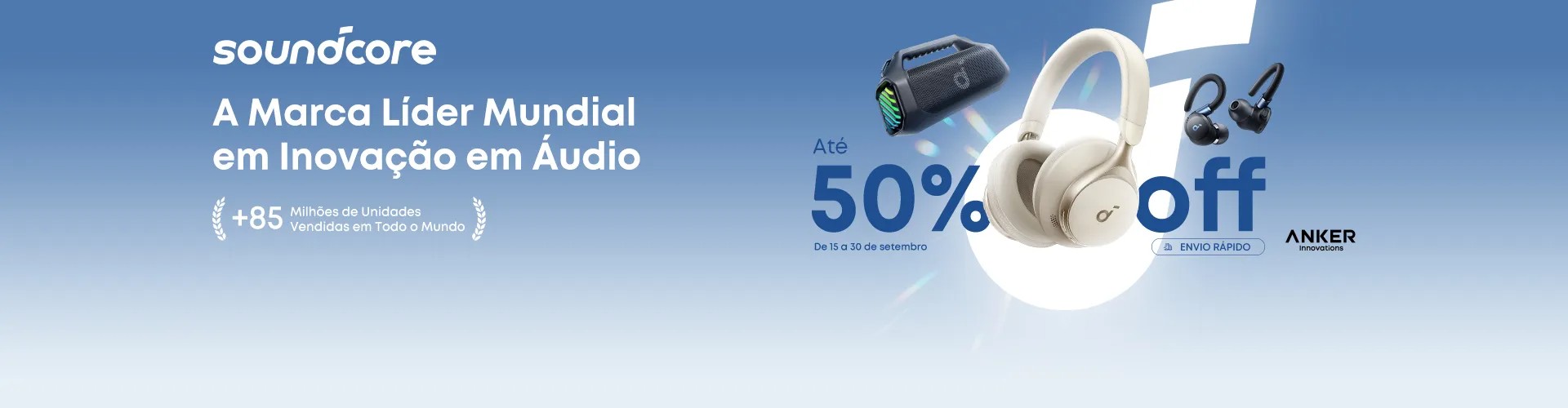 Aproveite até 50% de desconto em fones, caixas de som e acessórios Soundcore no Mercado Livre. Oferta válida somente até o fim de setembro com envio rápido garantido.