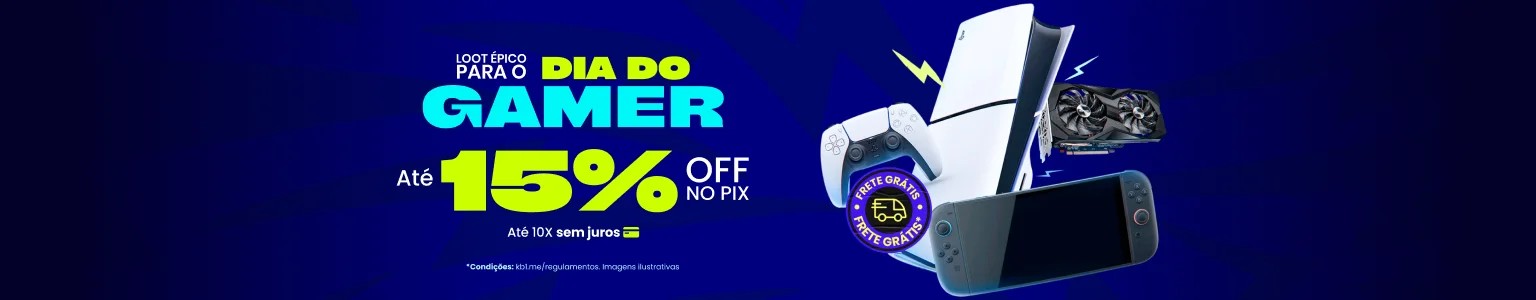 Aproveite a promoção Dia do Gamer Kabum e garanta até 15% de desconto pagando no Pix, além de parcelamento em até 10 vezes sem juros.